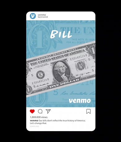 Since the first dollar bill was printed in 1862, U.S. currency has only shown white male presidents. And a lot has changed since then, so shouldn't our bills update too? We may not be able to update our U.S. currency (yet) but we can... virtually. Our concept is to design virtual dollar bills to send to friends and family when making payments on the Venmo app; with this idea, we will be adding diversity and inclusivity to the American bill with portraits of people of color and women who have also played an important role in U.S. history.
